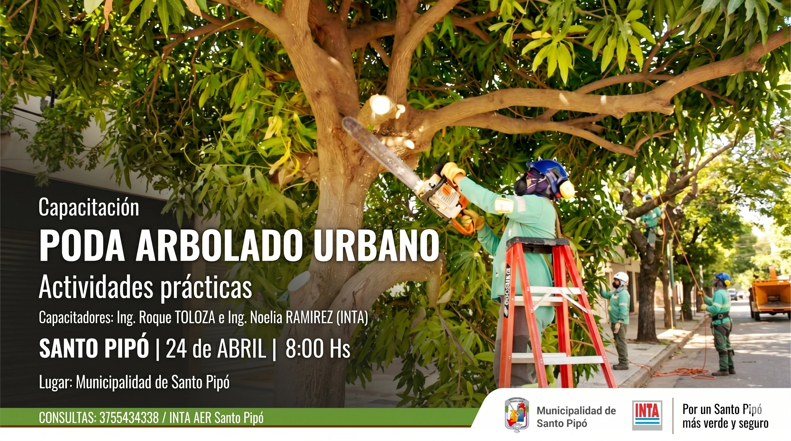 La Municipalidad de Santo Pipó, en un esfuerzo conjunto con el Instituto Nacional de Tecnología Agropecuaria (INTA Argentina) a través de su estación AER Santo Pipó, extiende una invitación especial a toda la comunidad para participar de una capacitación fundamental en Poda de Arbolado Urbano. El evento, programado para el próximo 24 de abril a partir de las 8:00 horas en las instalaciones de la Municipalidad, promete ser una experiencia enriquecedora y práctica.