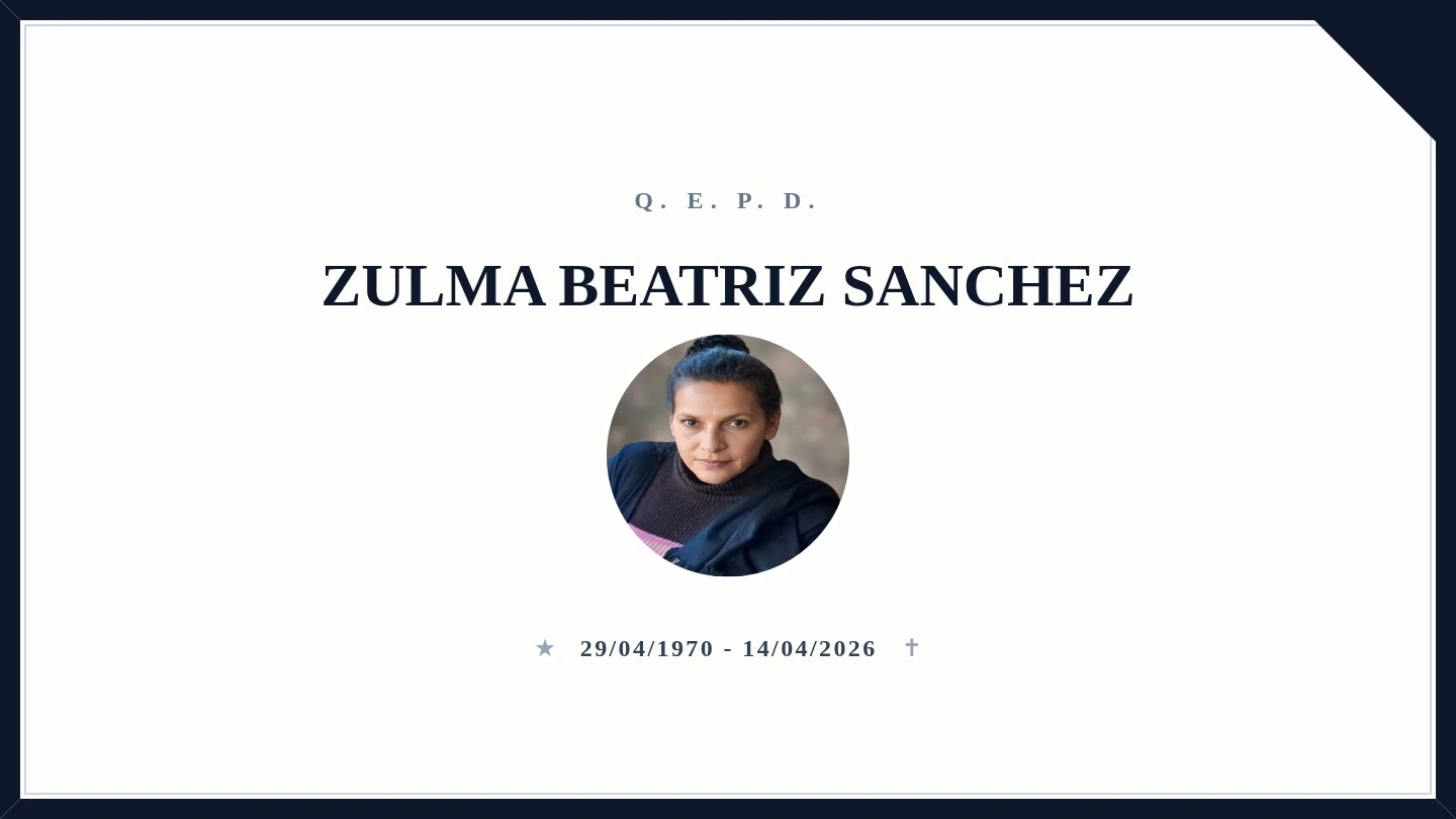 El sepelio se llevará a cabo mañana, 15 de abril, a las 09:00 horas en el Cementerio Local. Se espera una importante concurrencia para acompañar a la familia en este difícil momento y honrar la memoria de Zulma Beatriz Sánchez.