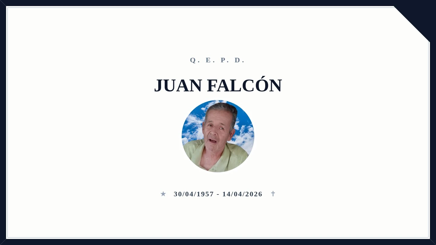 La comunidad de Capioví lamenta profundamente el fallecimiento de Juan Falcón, quien partió de este mundo en el día de hoy, martes 14 de abril. Nacido el 30 de abril de 1957, Juan alcanzó la edad de 69 años.