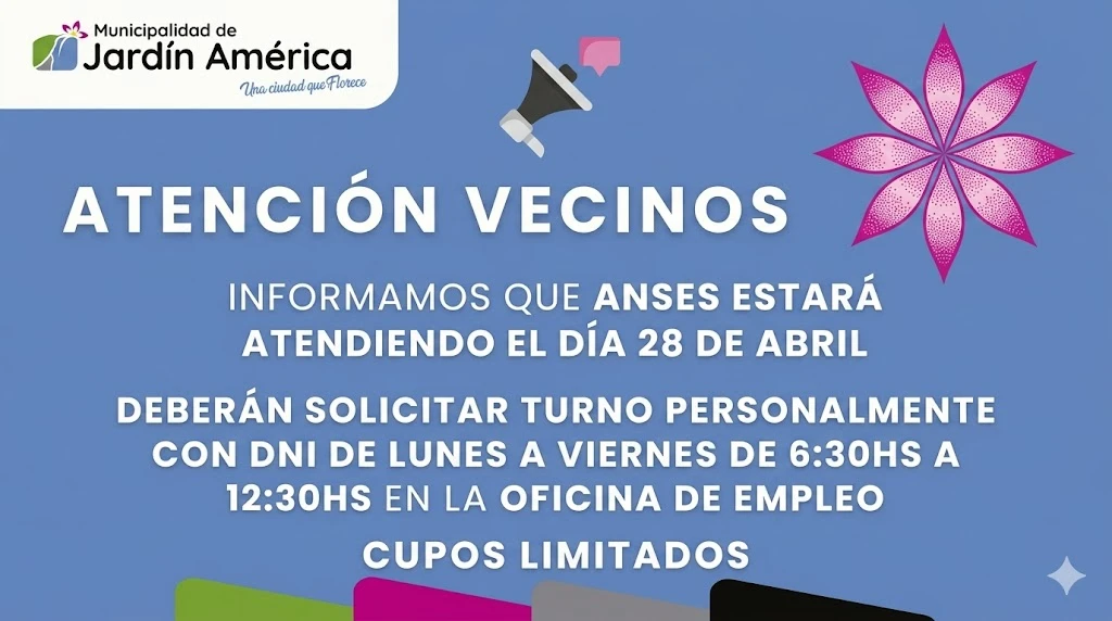 Jardín América, Misiones. – El municipio de Jardín América informó sobre la próxima realización de un importante operativo de atención de la Administración Nacional de la Seguridad Social (ANSES), que tendrá lugar el día 28 de abril. El objetivo principal de esta iniciativa es brindar asistencia a los vecinos que requieran realizar diversos trámites y consultas relacionadas con las prestaciones y servicios que ofrece el organismo previsional.