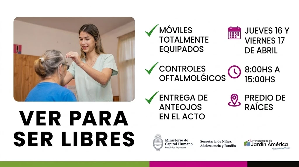 Este jueves 16 y viernes 17 de abril, a partir de las 8:00 horas, se llevará a cabo el importante operativo de salud visual denominado “Ver para ser libres”. El evento tendrá lugar en el Predio Raíces, ofreciendo a todos los vecinos la oportunidad de acceder a servicios fundamentales para el cuidado de su visión.